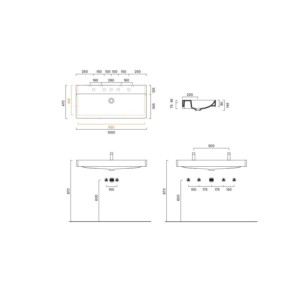 Der Preis gilt nur für das Waschbecken ohne Wasserhahnbohrung.