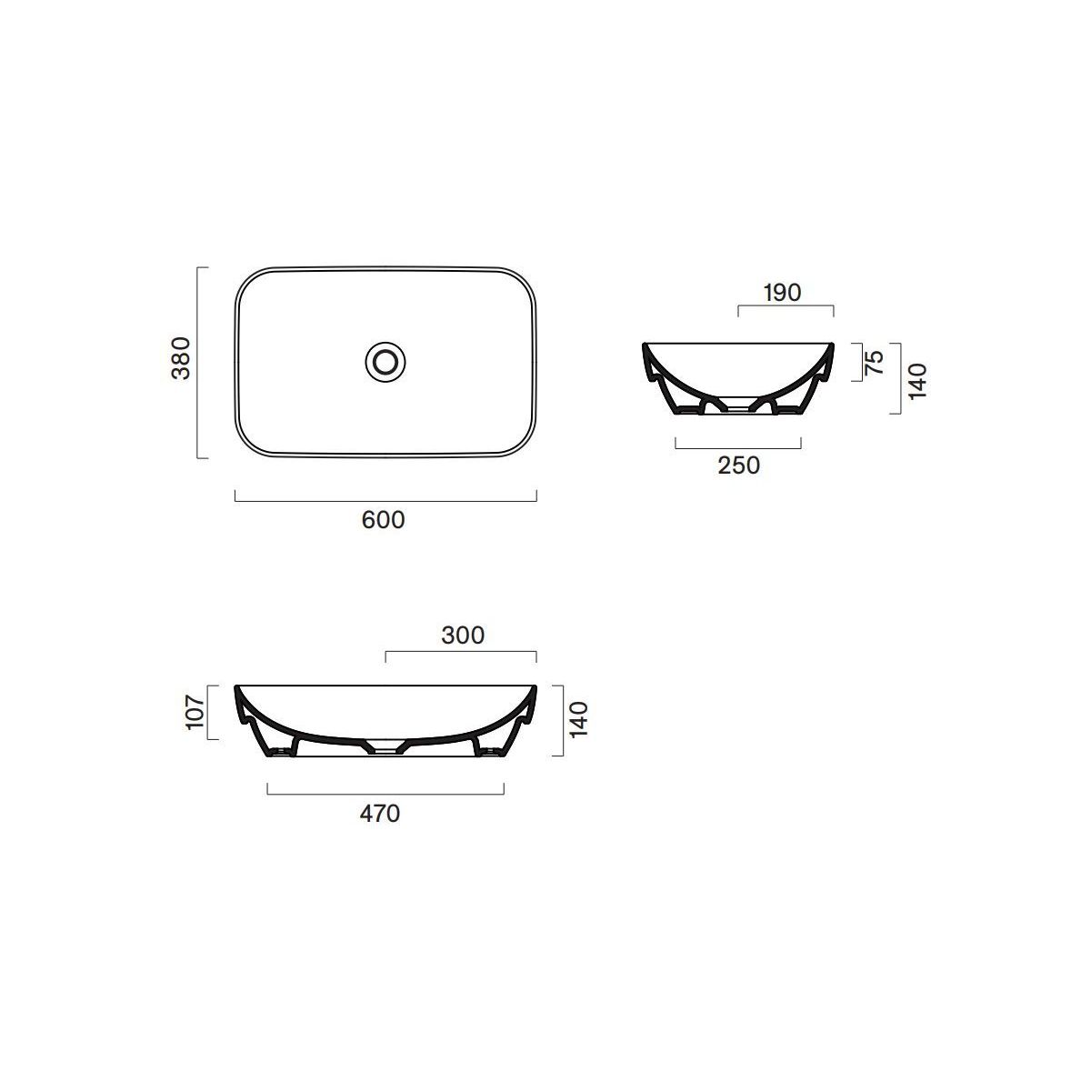Catalano Green Waschbecken 60x38 cm rechteckig Einbauwaschbecken schwarz 0424600022