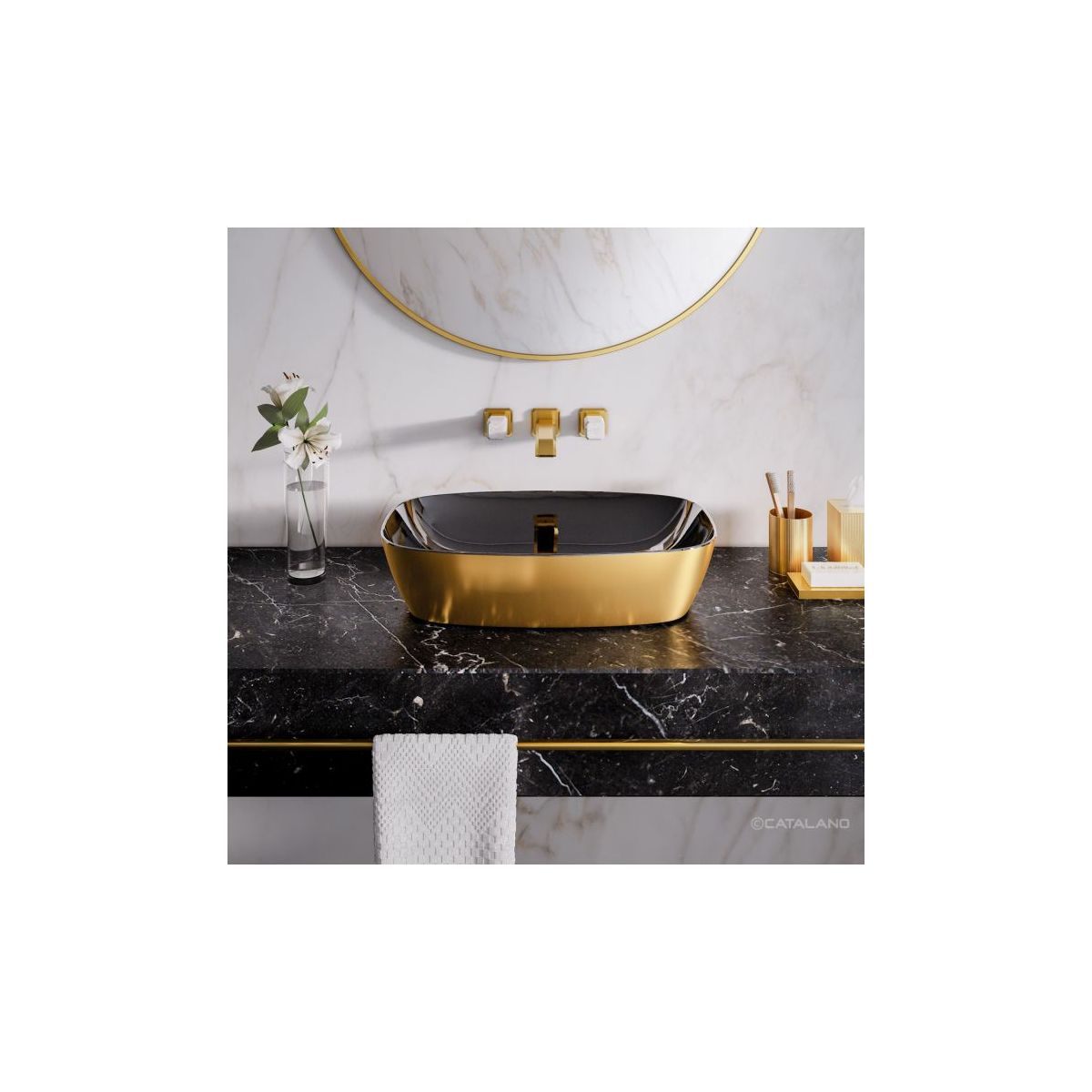 Catalano Green Waschbecken 60x40 cm oval Aufsatzwaschbecken schwarz-gold 160APGRLXNO