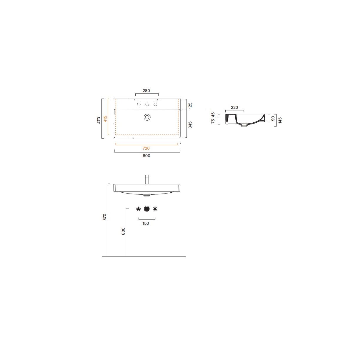 Der Preis gilt nur für das Waschbecken ohne Wasserhahnbohrung.