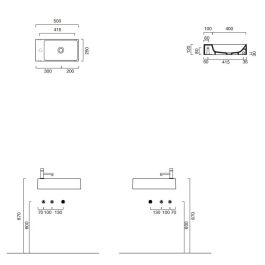 - Waschbecken wird nur an der Längsseite an der Wand befestigt