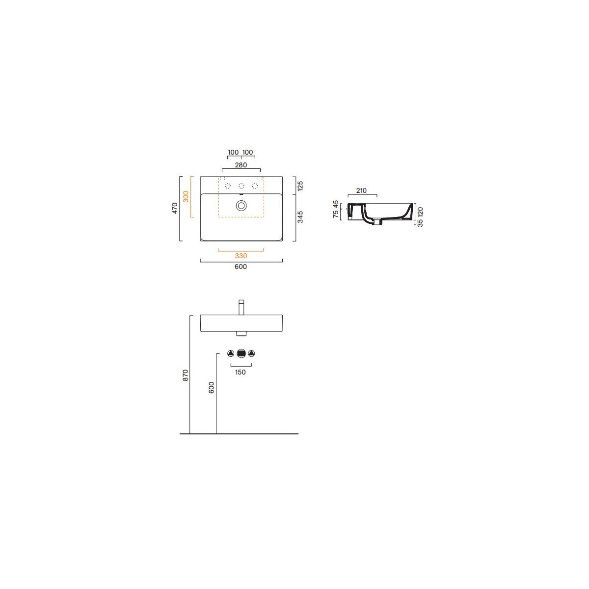 Der Preis gilt nur für das Waschbecken ohne Wasserhahnloch.