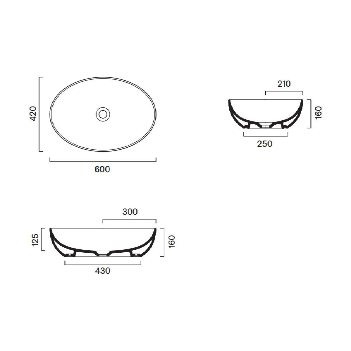 Catalano Sfera Waschbecken 60x42 cm oval Aufsatzwaschbecken 0522600031
