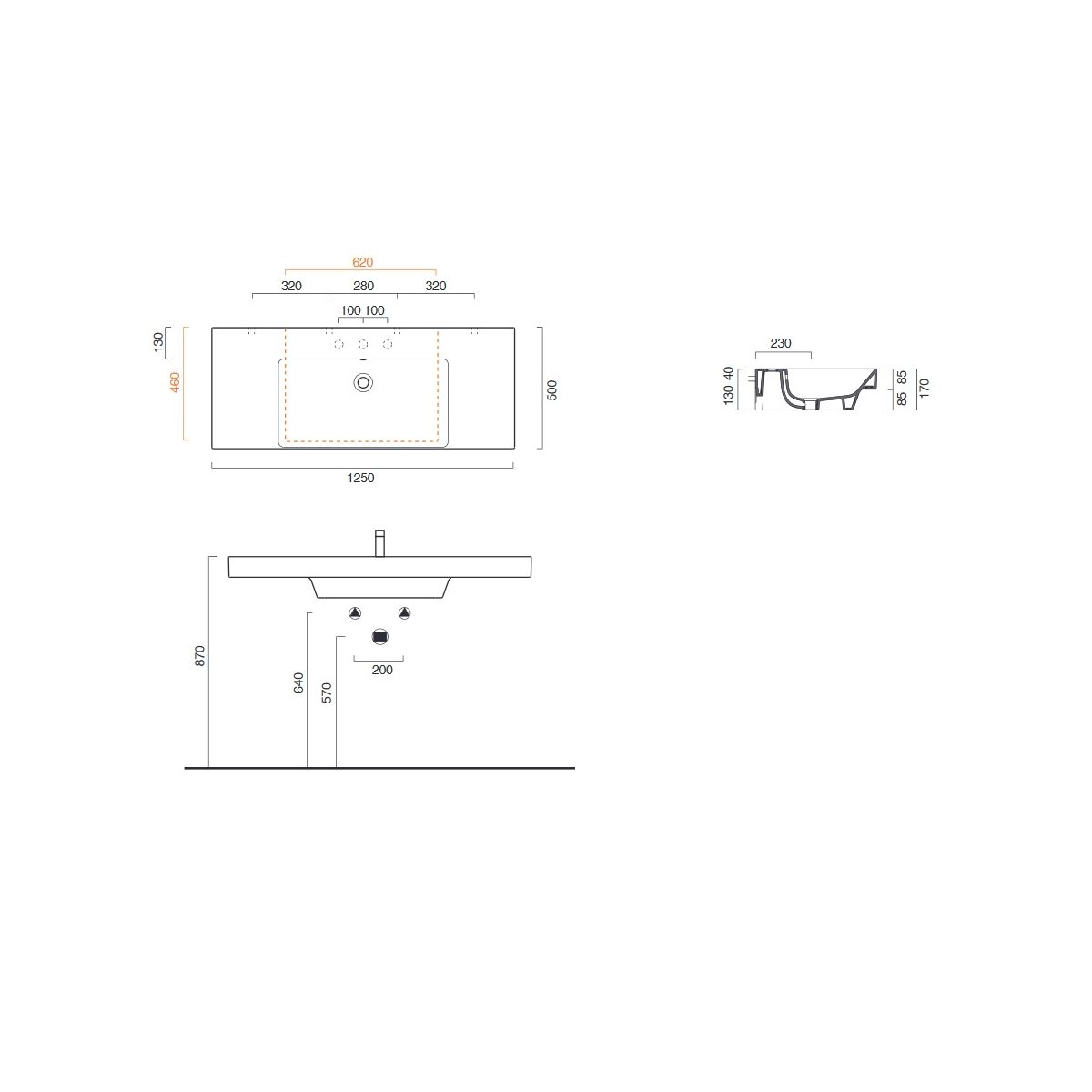 Catalano Zero Waschbecken 125x50 cm rechteckig Klassisch weiß 0121260001