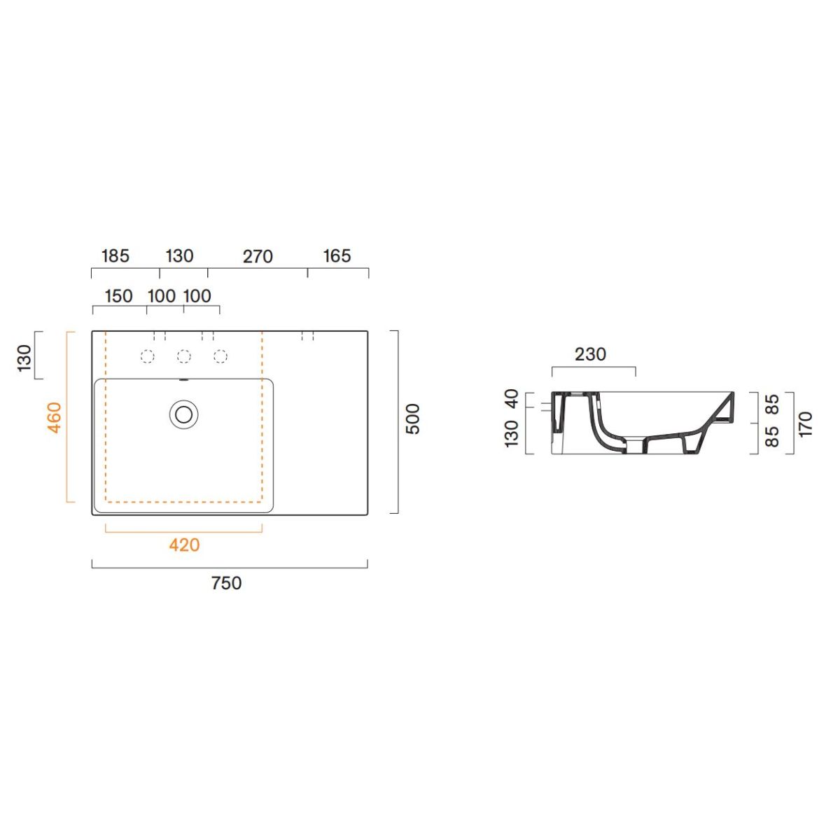 Catalano Zero Waschbecken 75x50 cm rechteckig Aufsatzwaschbecken weiß 0120791001