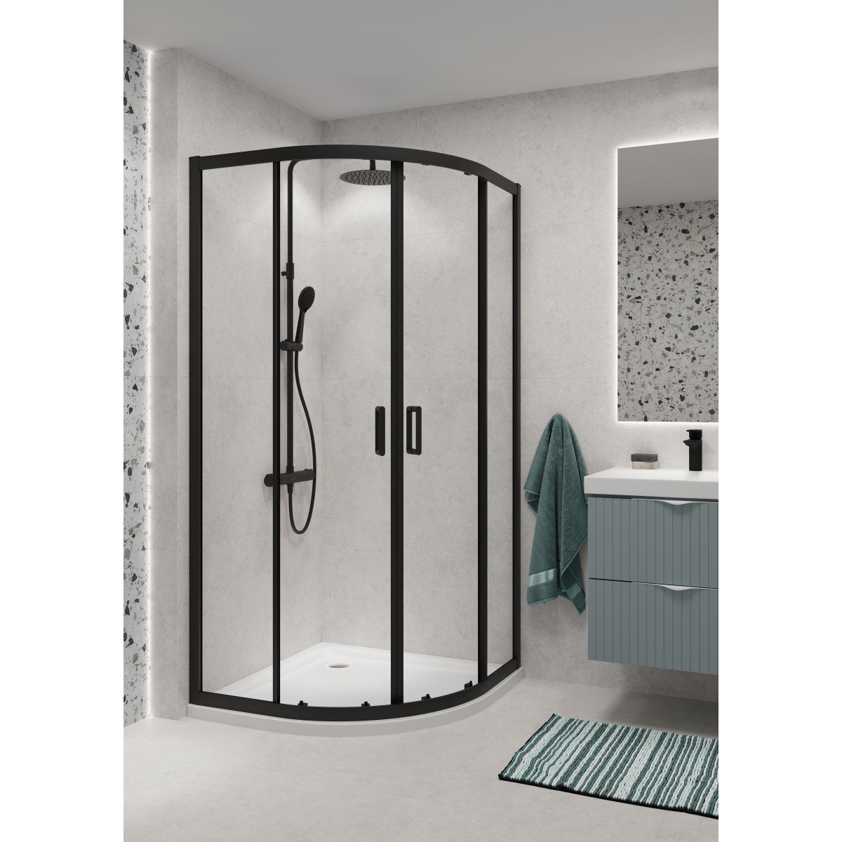 Cersanit Arteco Dusche 80x80 cm halbrund schwarz Matte/durchsichtiges Glas S913-013