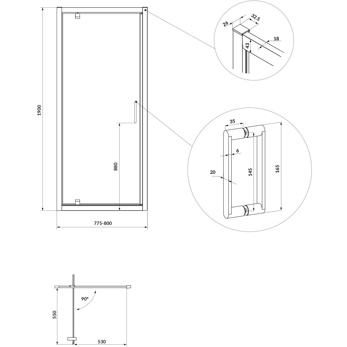 Cersanit Arteco Duschtüren 80 cm aufklappbar chrom Glanz/durchsichtiges Glas S157-007