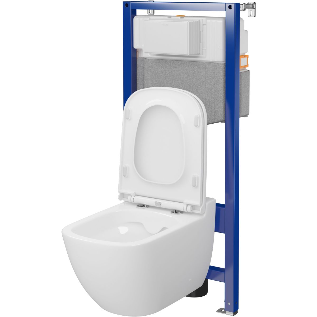 Der Unterputzrahmen AQUA 50 MECH QF für den Trockenbau ist mit einer Reihe von funktionalen Lösungen ausgestattet, die die Montage erleichtern und beschleunigen: Bremsen in den Füßen des Rahmens, drehbare verzinkte Füße, das Montagesystem QUICK FIX, das die Installation des Produkts in einer Ecke des Raumes ermöglicht, ein Abflussbogen mit vierstufiger Tiefenverstellung, eine Markierung „1 Meter” zur einfachen Bestimmung der Aufhängehöhe der Schüssel und ein Farbcodierungssystem, das die Montage des Rahmens erleichtert. Die einfache Installation wird durch die Möglichkeit ergänzt, die inneren Elemente des Behälters ohne Werkzeug einzustellen, sowie durch einen Anschlussschlauch mit O-Ring-Endstücken, die sich leicht von Hand festziehen lassen.