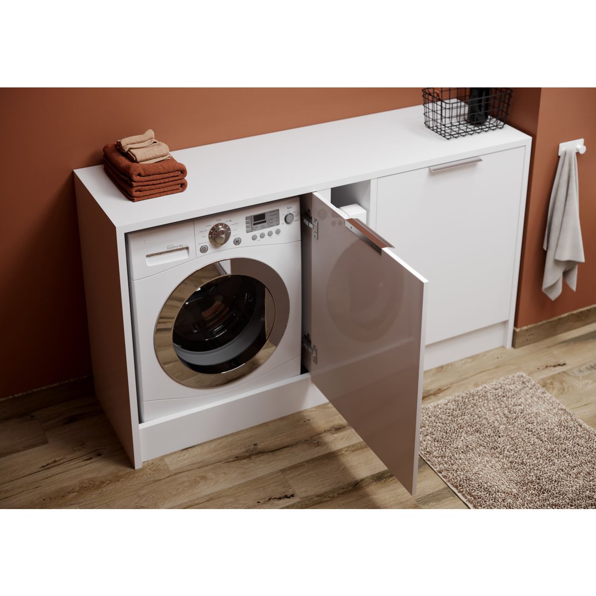 Eine Arbeitsplatte zur Kombination mit Unterbaumöbeln, auf der ein Waschbecken montiert oder kleine Gegenstände und Kosmetika abgestellt werden können. Die Arbeitsplatte besteht aus lackiertem MDF in Weiß.