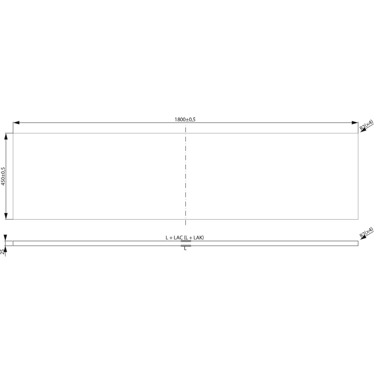 - Abmessungen [cm]: Breite 180 × Tiefe 45 × Höhe 2,5