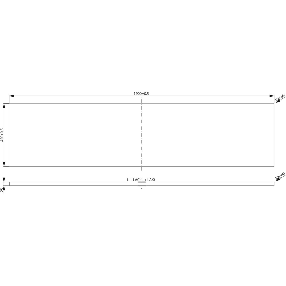 - Abmessungen [cm]: Breite 190 × Tiefe 45 × Höhe 2,5