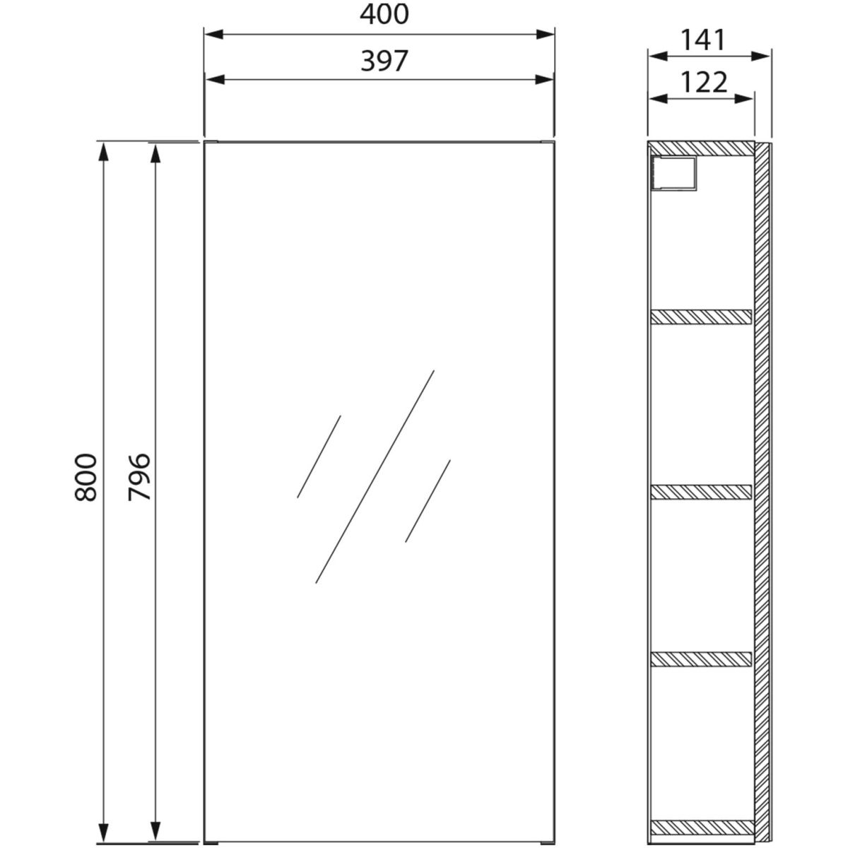 - Abmessungen [cm] Breite × Tiefe × Höhe: 40 × 14,1 × 80