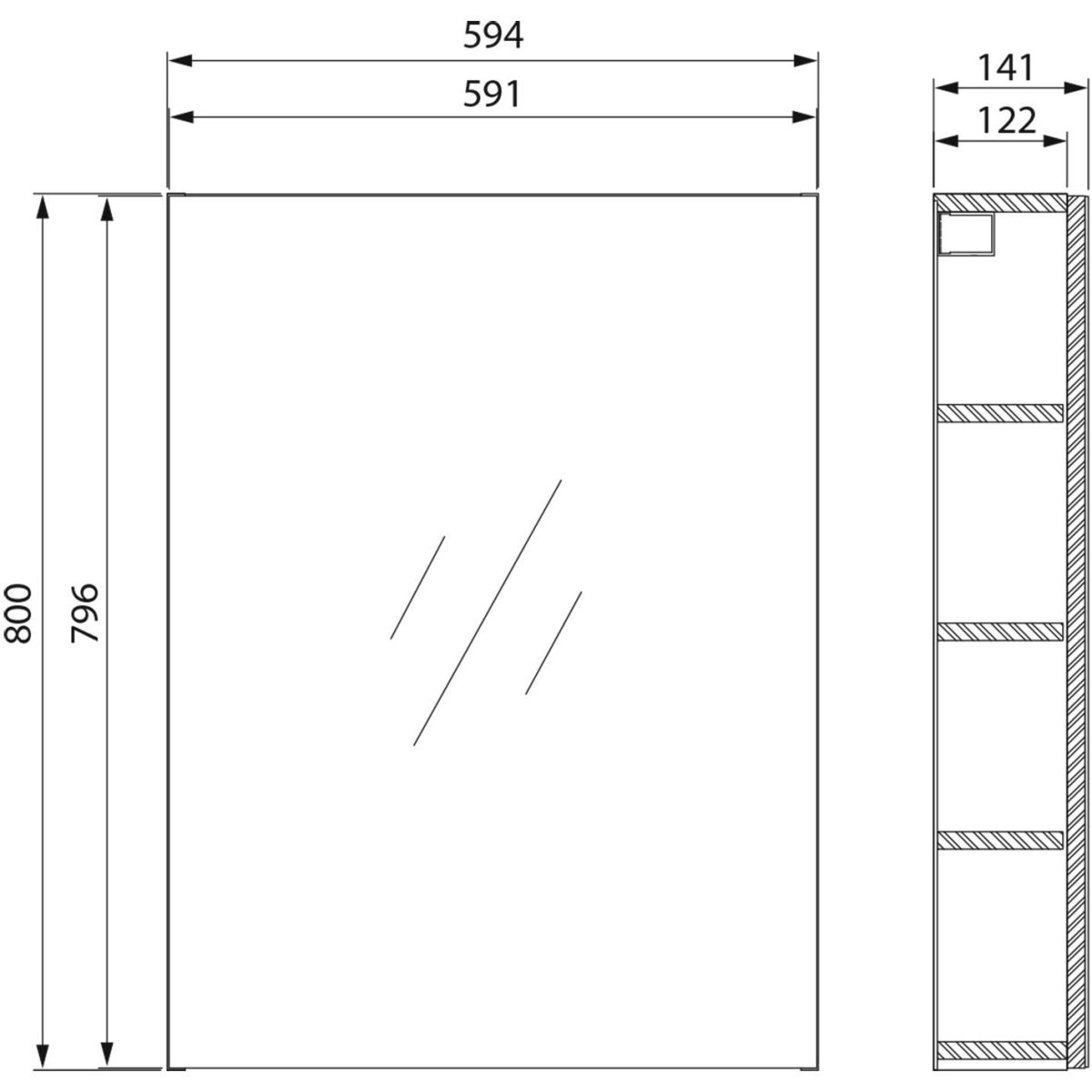- Abmessungen [cm] Breite × Tiefe × Höhe: 59,4 × 14,1 × 80