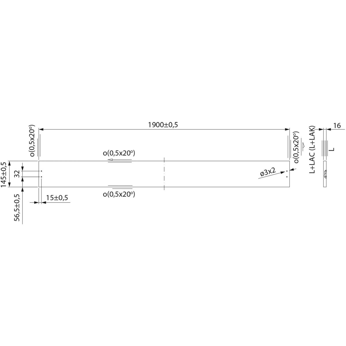 - Maße [cm] Breite × Tiefe × Höhe: 190 × 1,6 × 14,5