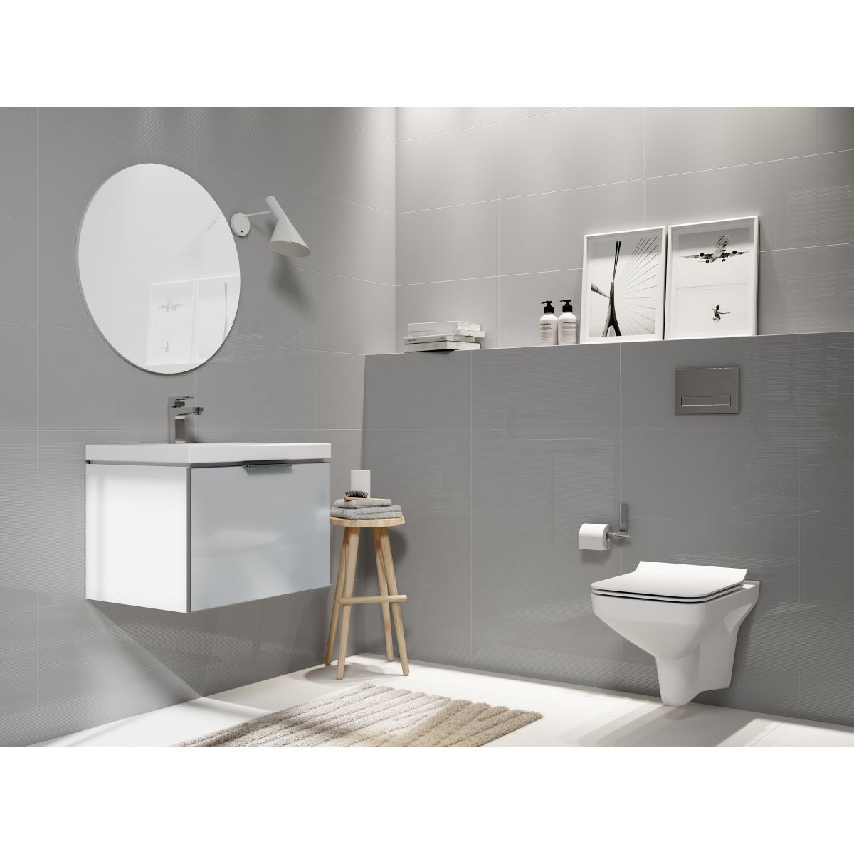 Weißes, rechteckiges Waschbecken der Marke Cersanit. Ideal für Menschen, die Einfachheit schätzen. Das Waschbecken ist recht breit, sodass Sie sicher sein können, dass Sie beim Händewaschen nicht das ganze Badezimmer nass spritzen. Das Produkt ist für den Einbau mit einem Schrank oder einer Waschtischplatte vorgesehen – ein in den letzten Jahren äußerst beliebtes Element der Badezimmerausstattung.