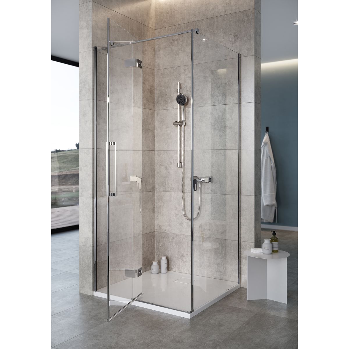 Die CREA-Duschkabinenkollektion ist eine einzigartige Kollektion, die dem Nutzer viele interessante Lösungen bietet. Das verdeckte Klappscharnier mit Hebefunktion und seiner schlichten Form passt perfekt zu den aktuellen Trends. Das 8 mm dicke Glas und die 200 cm Höhe der Duschkabine sind ein Vorteil, an dem man nicht vorbeigehen kann. Abgerundet wird das Ganze durch ein ästhetisches Wandprofil mit verdeckter Montage, einen langen Metallgriff und eine Regenrinne, die das Wasser von der Tür ins Innere der Kabine ableitet.