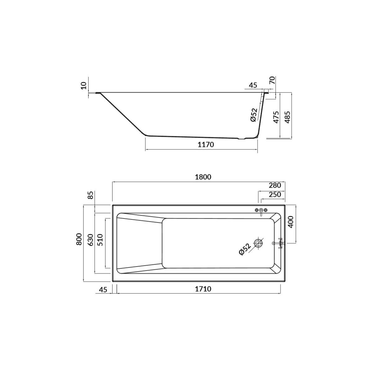 Cersanit Crea Rechteckige Badewanne 180x80 cm weiß S301-227