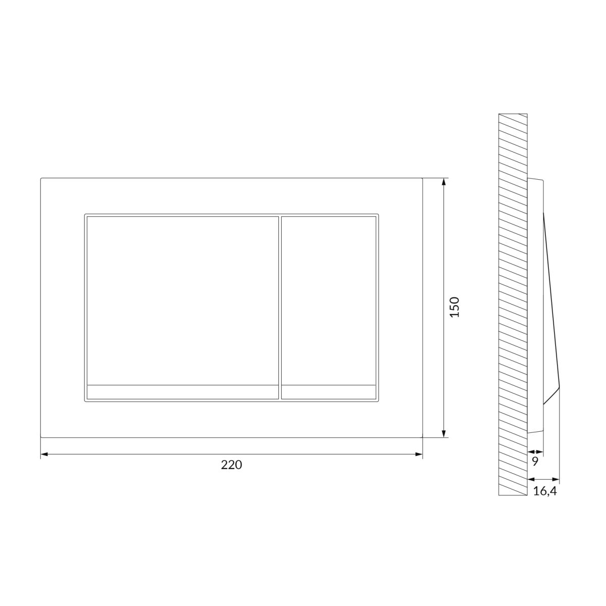 Die Taste ENTER II zeichnet sich durch ein schlichtes und ästhetisches Design aus. Das Modell verfügt über große rechteckige Tasten, die im Winkel zum Rahmen und zur Wand hervorstehen. Dank der leichten Neigung ist die Bedienung äußerst komfortabel. Die Taste ist aus Kunststoff mit einer matt verchromten Oberfläche gefertigt. Die Taste passt zu den Unterputz-Rahmen AQUA MECH. Er ist kompatibel mit dem SYSTEM FRESH, das in Verbindung mit der flanschlosen CleanOn-Technologie eine ideale Lösung darstellt, da das Fehlen eines Flansches die Verwendung von Erfrischungsmitteln nicht ausschließt. Diese komplette, moderne Lösung garantiert umfassende Hygiene in der Toilette. Die durchdachte Konstruktion des Knopfes gewährleistet eine einfache und schnelle Montage.