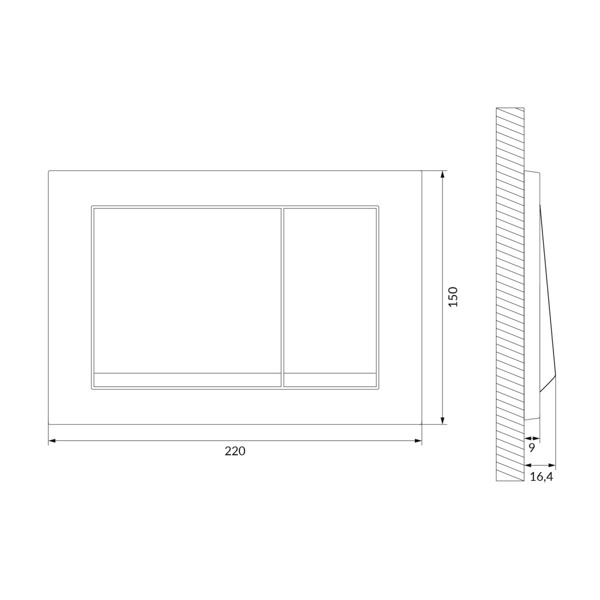 Die Taste ENTER II zeichnet sich durch ein schlichtes und ästhetisches Design aus. Das Modell verfügt über große rechteckige Tasten, die im Winkel zum Rahmen und zur Wand hervorstehen. Dank der leichten Neigung ist die Bedienung äußerst komfortabel. Die Taste ist aus Kunststoff in mattem Schwarz gefertigt. Die Taste passt zu den Unterputz-Rahmen AQUA MECH. Sie ist mit dem SYSTEM FRESH kompatibel, das in Verbindung mit der flanschlosen CleanOn-Technologie eine ideale Lösung darstellt, da das Fehlen eines Flansches die Verwendung von Erfrischungsmitteln nicht ausschließt. Diese komplette, moderne Lösung garantiert umfassende Hygiene in der Toilette. Die durchdachte Konstruktion der Taste gewährleistet eine einfache und schnelle Montage.