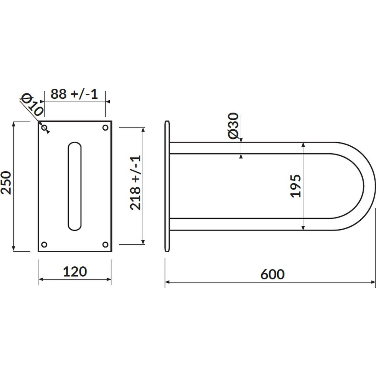 - Wandplatte mit einer Dicke von 6 mm, mit 4 Befestigungslöchern mit einem Durchmesser von 10,5 mm