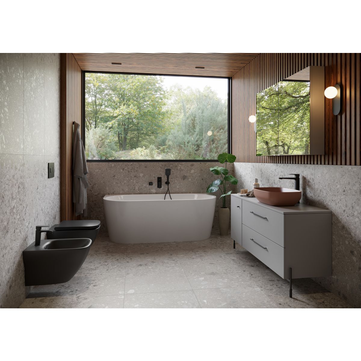 Das Wandbidet LARGA SQUARE mit einer Öffnung für die Armatur und einem verdeckten Befestigungssystem erhöht die Ästhetik und erleichtert die Montage des Bidets. Passend zum Bidet sind Klick-Klack-Stopfen aus Keramik oder Metall aus dem Angebot von Cersanit erhältlich. Die matte anthrazitfarbene Oberfläche des Bidets passt perfekt zu den matten Waschbecken aus der Kollektion LARGA. Die Keramik hat antibakterielle Eigenschaften, da sie mit Silberionen – SILVER PROTECT – veredelt wurde.