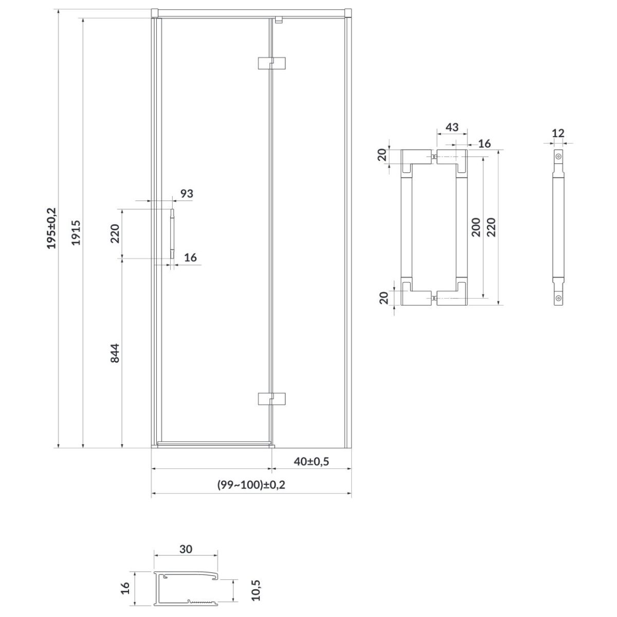Cersanit Larga Duschtüren 100 cm aufklappbar schwarz Matte/durchsichtiges Glas S932-125