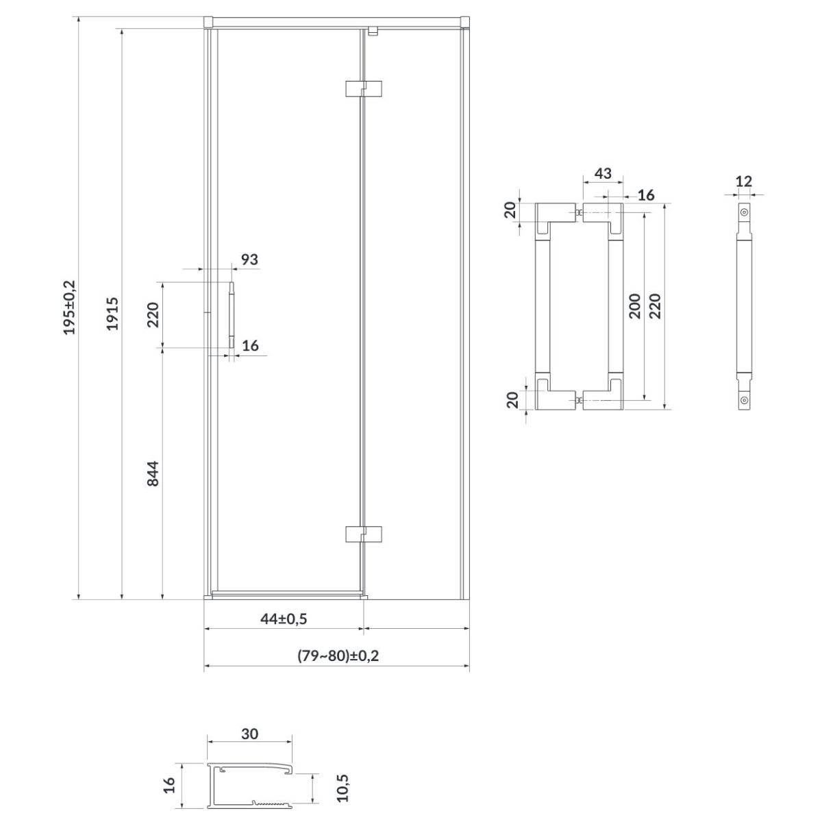 Cersanit Larga Duschtüren 80 cm aufklappbar schwarz Matte/durchsichtiges Glas S932-123