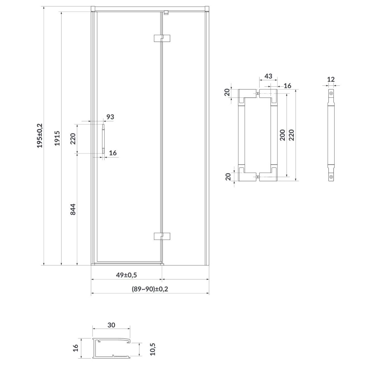 Cersanit Larga Duschtüren 90 cm aufklappbar chrom Glanz/durchsichtiges Glas S932-116