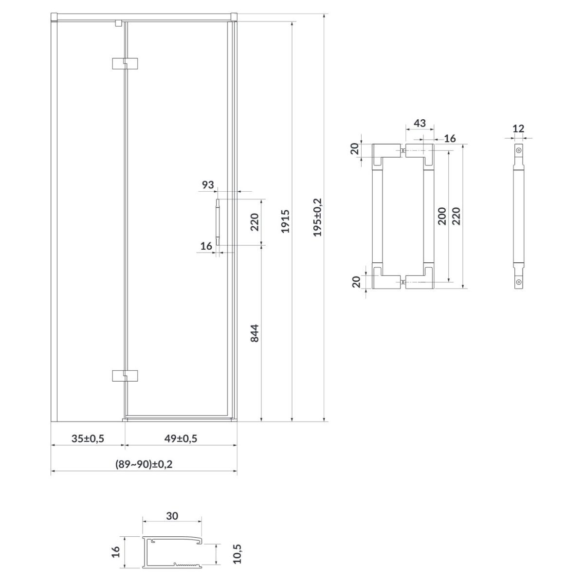 Cersanit Larga Duschtüren 90 cm aufklappbar chrom Glanz/durchsichtiges Glas S932-120