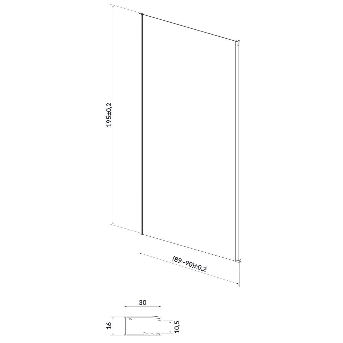 Cersanit Larga Duschwand 90 cm schwarz Matte/durchsichtiges Glas S932-134