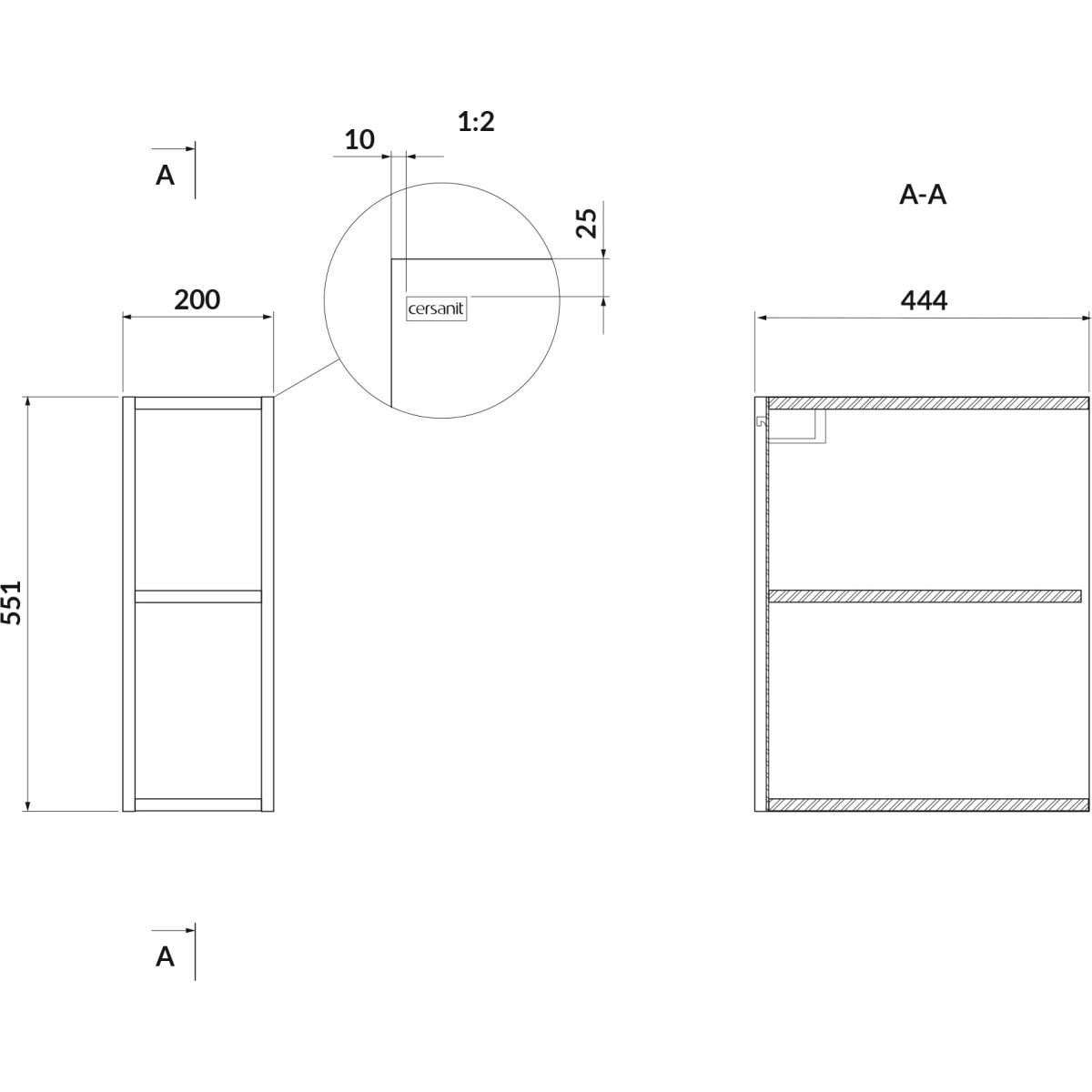 Cersanit Larga Kabinett 20x44.4x55.1 cm Seitenschrank hängend weiß S932-088