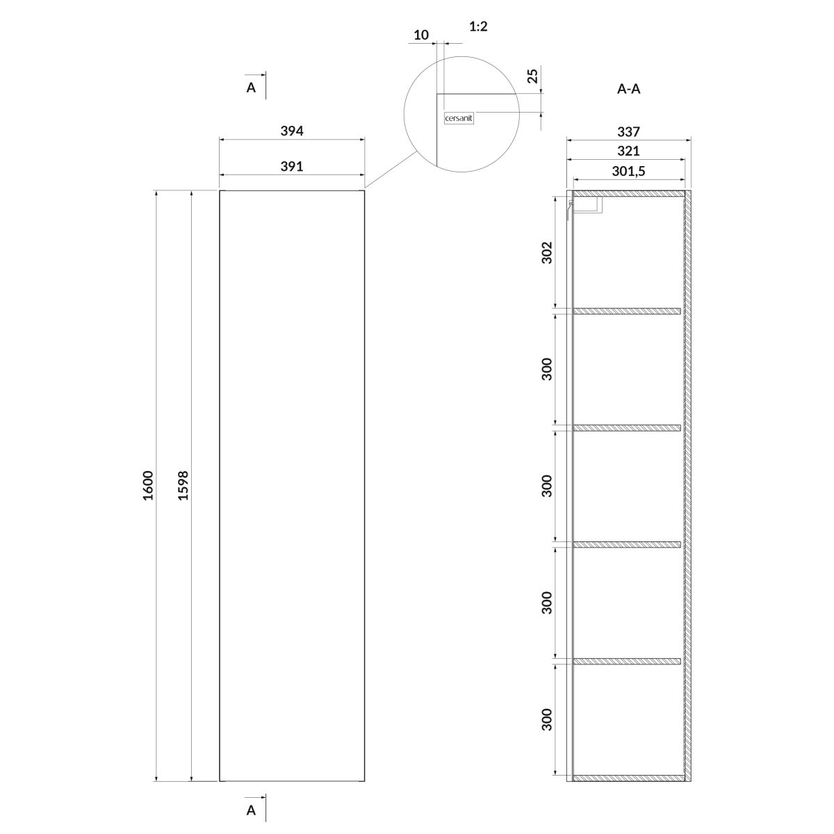 Cersanit Larga Kabinett 39.4x33.7x160 cm Seitenschrank hängend weiß S932-019