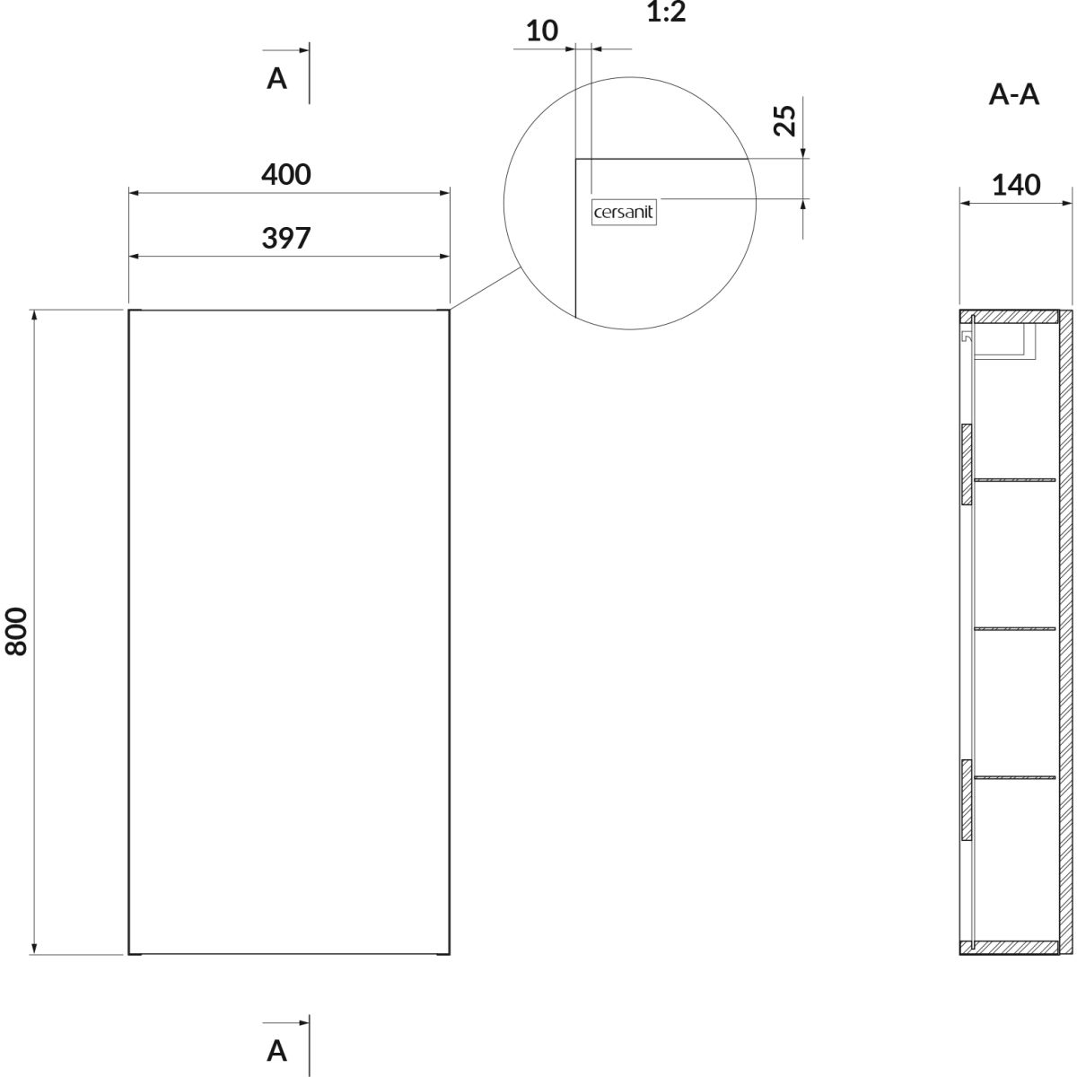 Cersanit Larga Kabinett 40x14x80 cm Seitenschrank hängend weiß S932-001