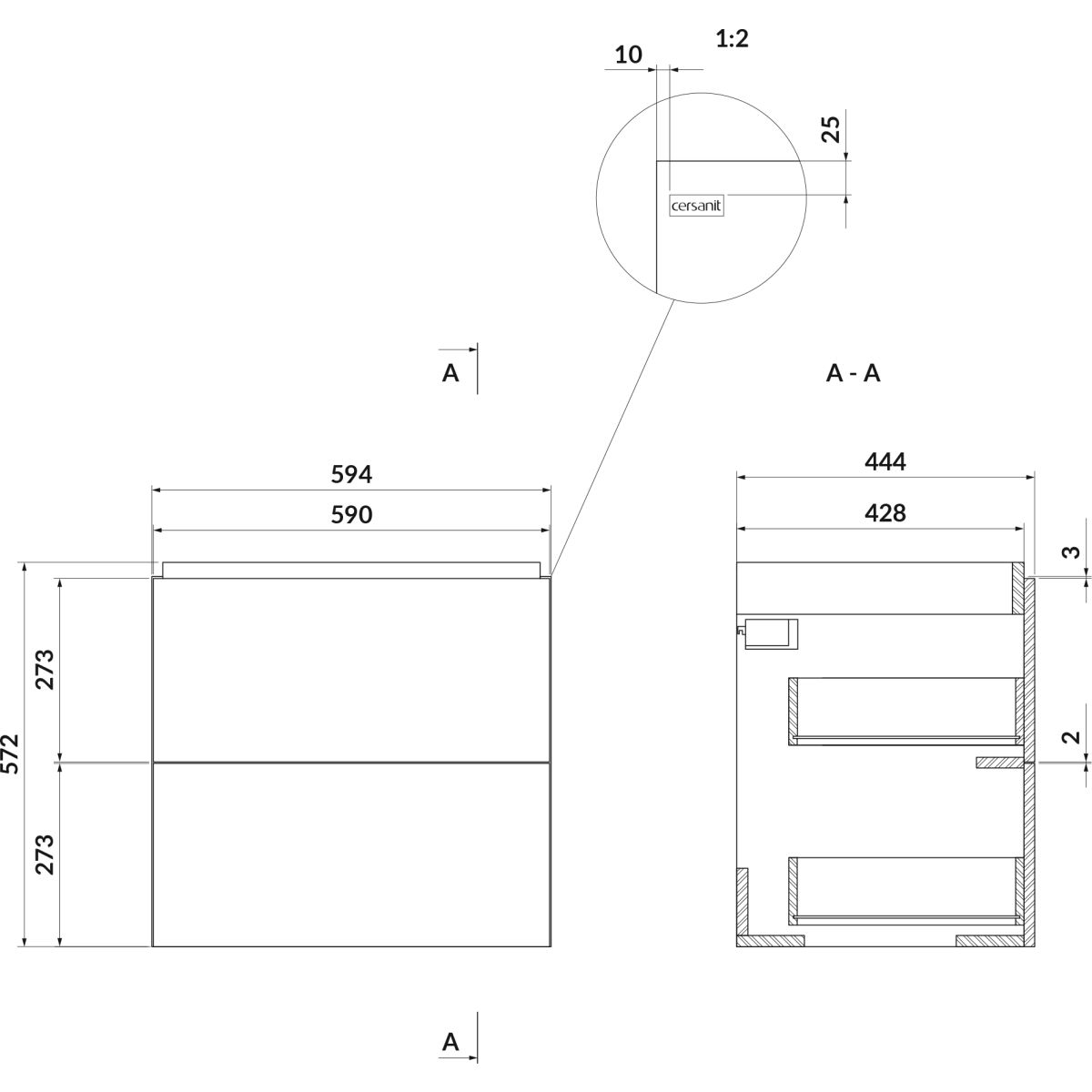 Cersanit Larga Kabinett 59.4x44.4x57.2 cm Unterschrank hängend grau S932-072
