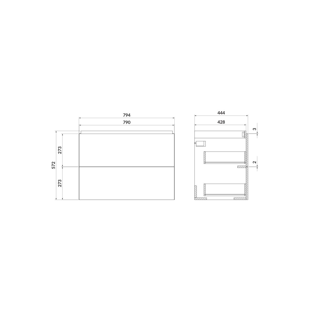Waschbeckenunterschrank aus der Larga-Kollektion in Anthrazit in der Größe 80. Die Front und der Korpus bestehen aus Spanplatten, die mit einem eleganten anthrazitfarbenen Lack überzogen sind. Der Schrank verfügt über zwei geräumige Schubladen, die viel Platz für die Aufbewahrung von Kosmetika, Handtüchern und Badaccessoires bieten. Ihr Inneres ist in einem eleganten Grauton gehalten, der mit der anthrazitfarbenen Front harmoniert und ein ästhetisch einheitliches Ganzes bildet. Das Soft-Close-System sorgt dafür, dass die Schubladen sanft und geräuschlos schließen, was den Bedienkomfort erhöht. Ein charakteristisches Element des Schranks ist der gefräste Griff, der seinen minimalistischen Stil unterstreicht. Dieser Griff ist in drei Farben erhältlich – Silber, Gold und Schwarz –, wodurch das Möbelstück individuell gestaltet und an andere Badezimmerausstattungselemente angepasst werden kann. Der Griff muss separat erworben werden. Die Platte, aus der der Schrank gefertigt ist, verfügt über das Zertifikat FSC MIX CREDIT SGSCH-COC-007574.
