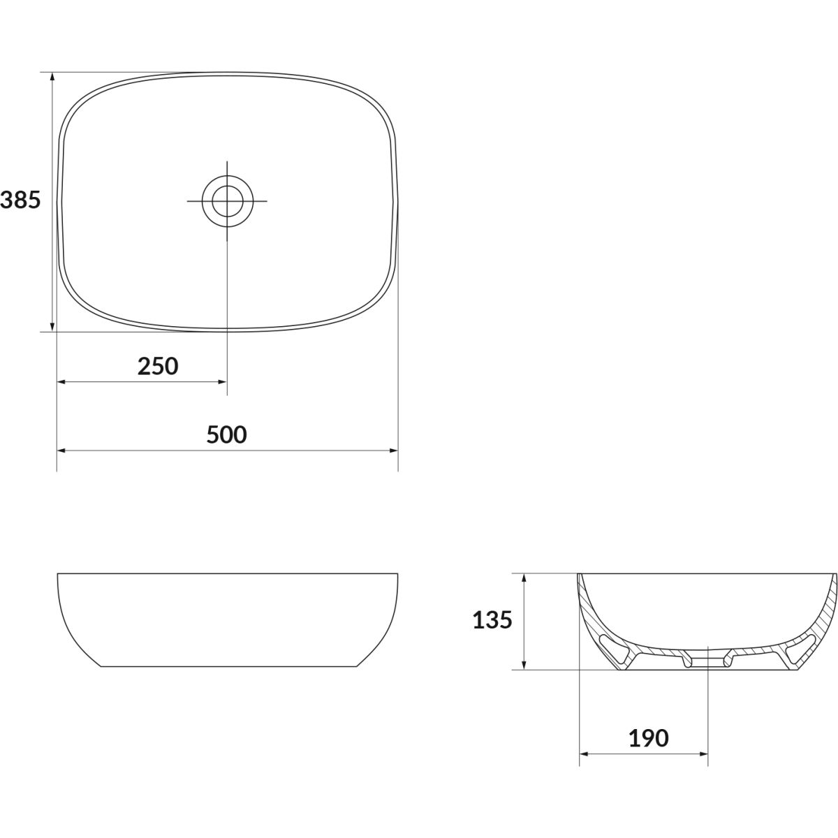 Cersanit Larga Waschbecken 50x38.5 cm rechteckig Aufsatzwaschbecken weiß K677-003