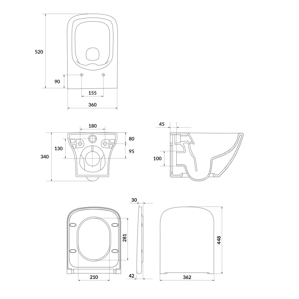 Hängende Toilettenschüssel LARGA SQUERE mit innovativer CleanOn-Technologie. Dank dieser Technologie werden alle Innenflächen der Schüssel effektiv mit Wasser gespült, wodurch die Toilette länger sauber und hygienisch bleibt. Das Besondere an der hängenden Toilettenschüssel LARGA ist ihr modernes Design. Im Lieferumfang enthalten ist ein superdünner SLIM WRAP-Sitz, dessen einfache Konstruktion eine leichte Reinigung gewährleistet, und die innovative One-Button-Easyoff-Lösung ermöglicht ein schnelles und einfaches Abnehmen des Sitzes mit einem einzigen Knopfdruck. Die Soft-Close-Funktion sorgt für ein sanftes Absenken des Sitzes und verhindert ein plötzliches Aufschlagen auf die Toilettenschüssel.