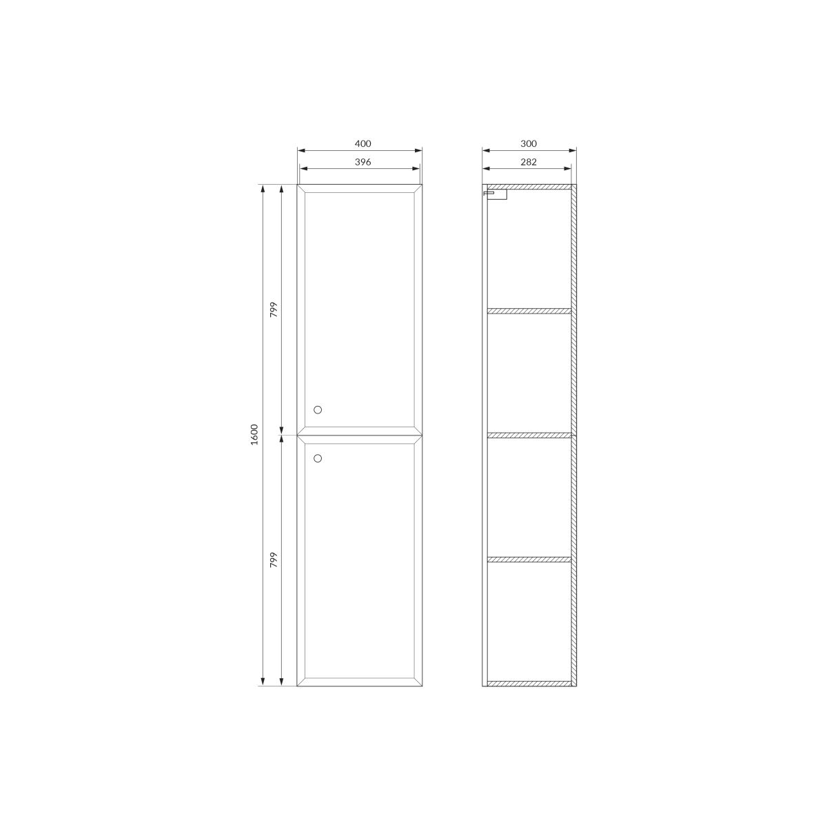 Cersanit Milagros Kabinett 40x30x160 cm Seitenschrank hängend weiß S1021-010