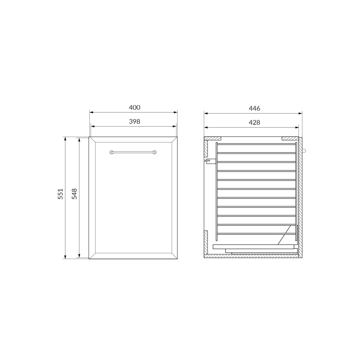 - Schubladen mit durchgehendem Boden – geeignet für flache Siphons, vergrößern den Nutzraum und bieten Komfort und eine bessere Organisation der Aufbewahrung.