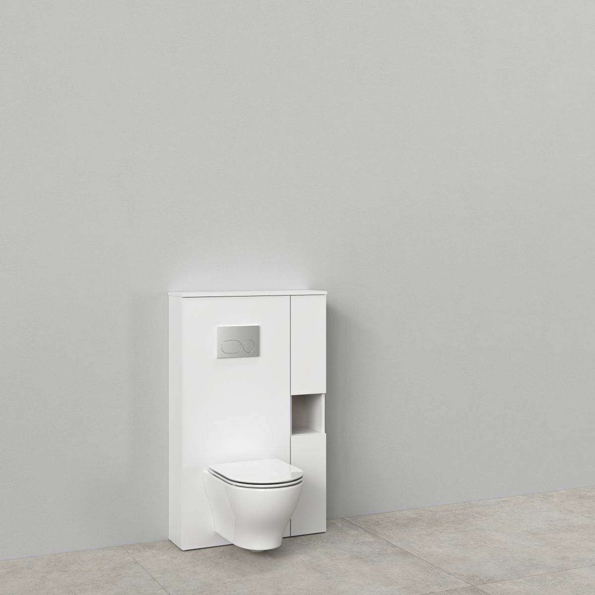 Die Unterputz-Rahmenverkleidung ist ein weiteres Element, das den modularen Charakter der Milagros-Kollektion unterstreicht. Dank ihrer Ästhetik und einzigartigen Funktionalität ist sie die ideale Lösung für moderne Badezimmer. Die mattweiße Oberfläche verleiht der Rahmenverkleidung eine subtile Eleganz, die sich perfekt in andere Badezimmerelemente einfügt. Die Unterputz-Rahmenverkleidung verbirgt effektiv alle technischen Elemente des WC-Systems und verleiht dem Badezimmer ein ästhetisches Aussehen. Dank der Möbelverkleidung des Rahmens können wir den Unterputzrahmen einfach und schnell verbergen, ohne in die Fliesen eingreifen zu müssen. Für diese Verkleidung muss je nach gewünschter Gestaltung eine spezielle Arbeitsplatte erworben werden.