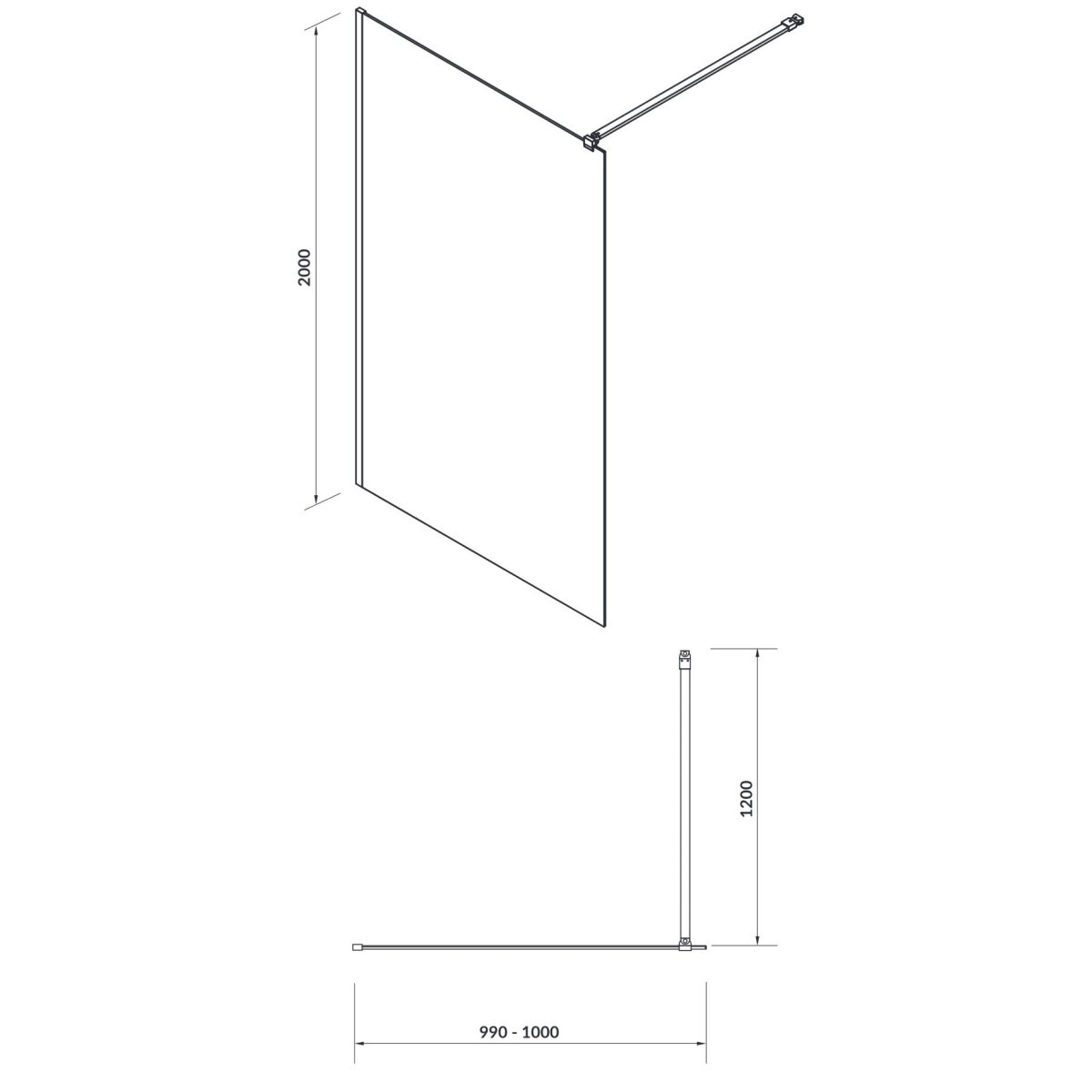 Cersanit Mille Begehbare Duschwand 100 cm schwarz Matte/durchsichtiges Glas S161-003