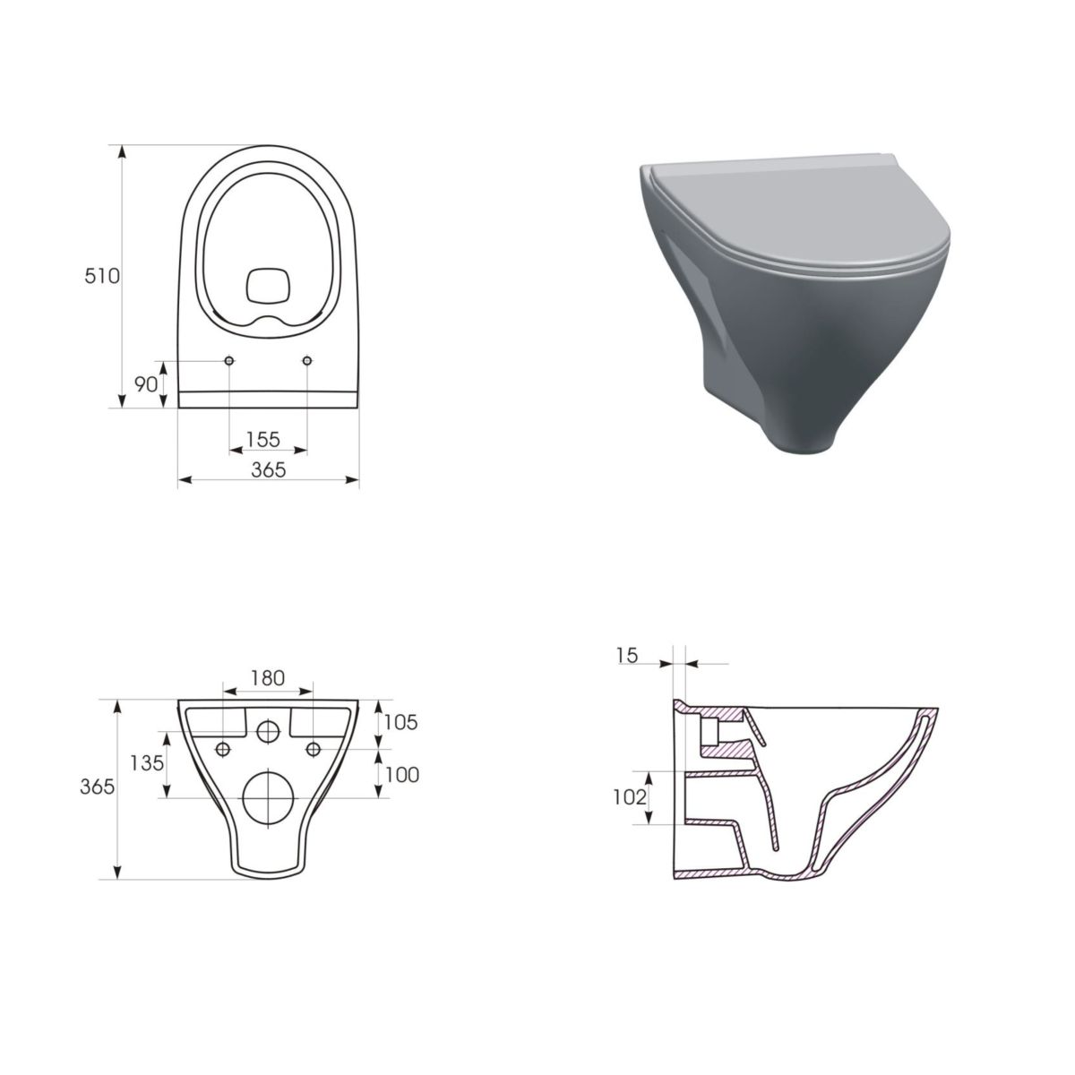 3. Duroplast-Sitz Mille slim, langsam senkend, leicht abnehmbar