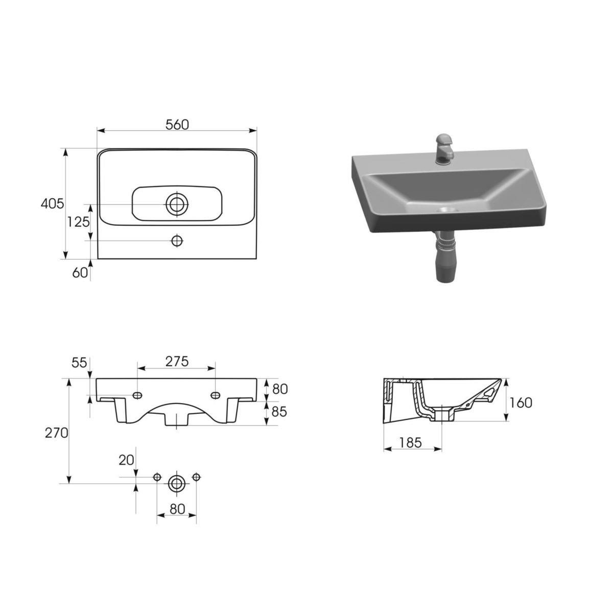 Cersanit Mille Waschbecken 56x40.5 cm rechteckig Klassisch weiß K675-001