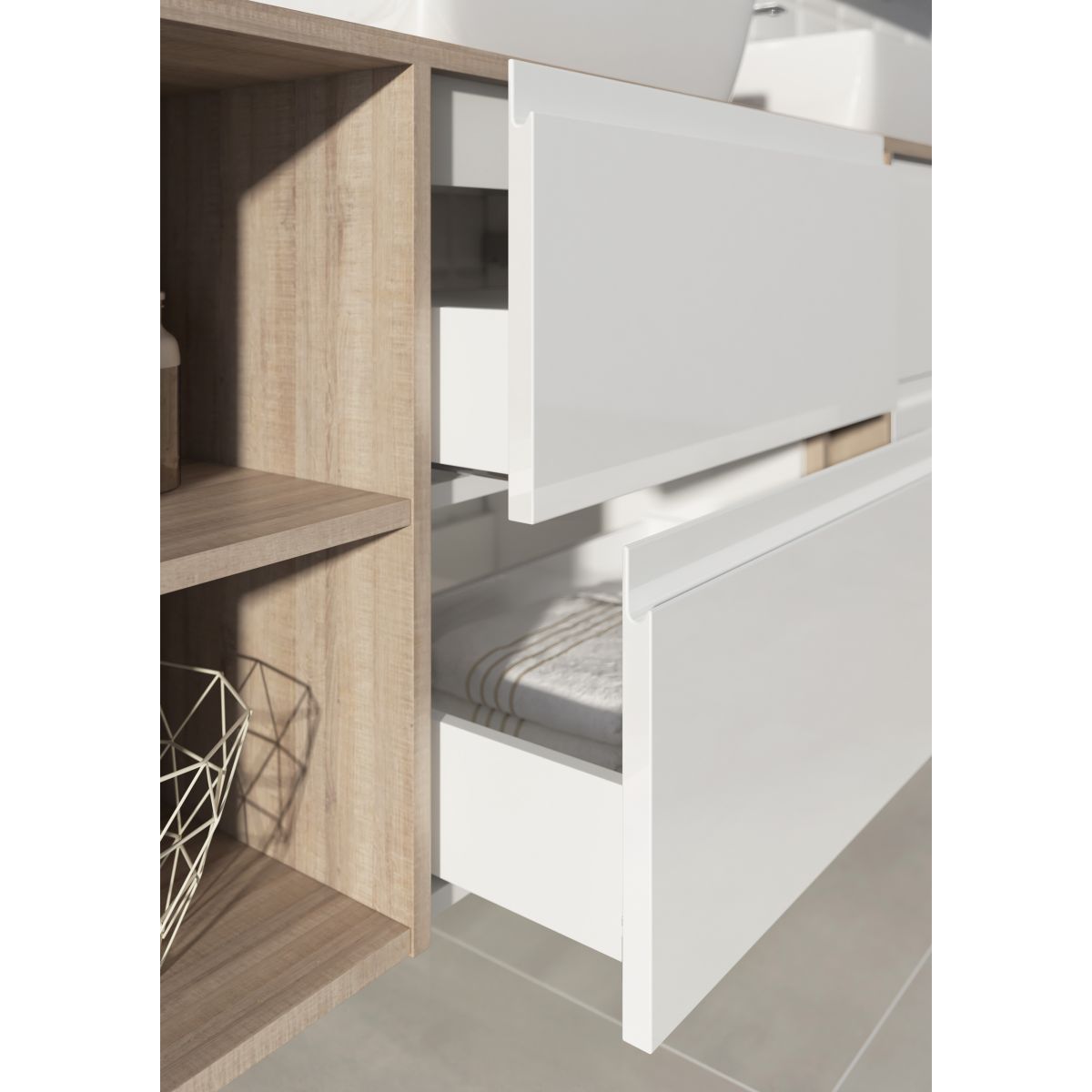 - Innenseite der Schubladen in Grau