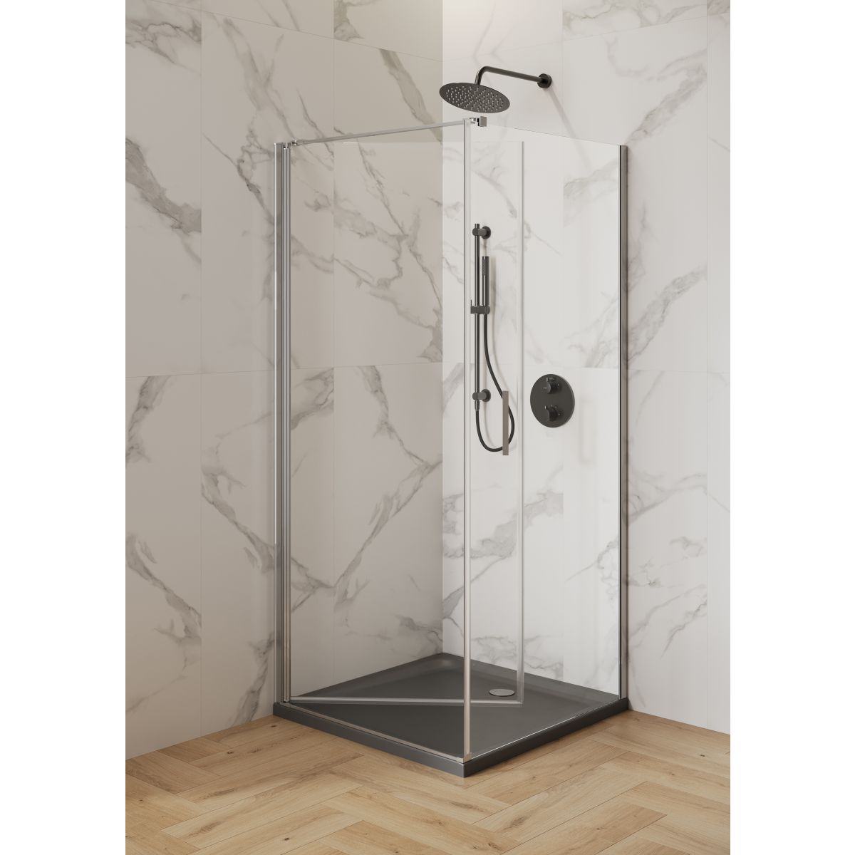 Die Türen der Duschkabine bestehen aus 6 mm starkem Sicherheitsglas, das für Stabilität sorgt und die Sicherheit bei der Benutzung garantiert. Das Glas ist mit einer wasserabweisenden CleanPro-Beschichtung versehen, die wirksam Kalkablagerungen und Verschmutzungen verhindert und so die Reinigung der Kabine erleichtert. Die aus einer einzigen Glasscheibe gefertigten Türen sind mit einem funktionalen Scharnier ausgestattet, das sowohl einen weiten Öffnungswinkel nach außen als auch ein Einklappen in die Kabine ermöglicht, wodurch nach dem Duschen Platz im Badezimmer gespart wird. Das Säulenscharnier verfügt außerdem über eine Funktion zum Anheben und Absenken der Tür, wodurch die Lebensdauer der Dichtungen verlängert wird. Die doppelseitigen Griffe aus hochwertigem Metall verbinden Langlebigkeit und Funktionalität. Das verstellbare Wandprofil sorgt für mehr Flexibilität bei der Montage, da es für den Einsatz an unebenen Wänden geeignet ist. Magnetische Dichtungen und eine Schwellenleiste verhindern das Austreten von Wasser und erhöhen den Bedienkomfort. Das Produkt ist sowohl für die Montage in einer Nische als auch mit einer Seitenwand der Kabine oder einer MODUO-Tür vorgesehen. Montage mit Duschwanne oder direkt auf dem Boden. Schwingtüren mit Säulenscharnier, universell rechts- oder linksseitig. Profile in glänzendem Chrom. Transparentes Glas. Höhe 195 cm. Die hohe Qualität des Produkts wird durch eine langjährige Garantie bestätigt.