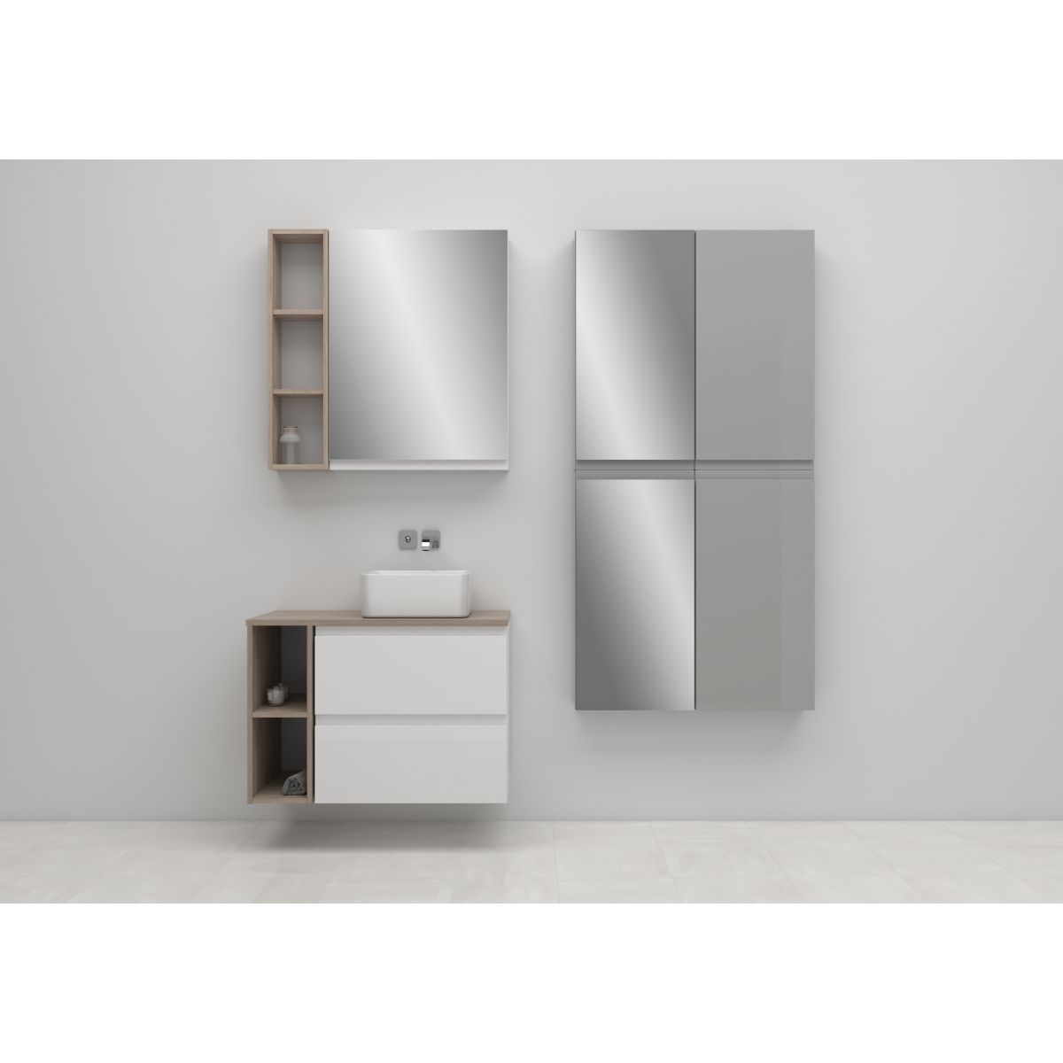 - Der Schrankmodul kann mit anderen Moduo-Unterschränken kombiniert werden, um eine komplette Badezimmereinrichtung zu schaffen