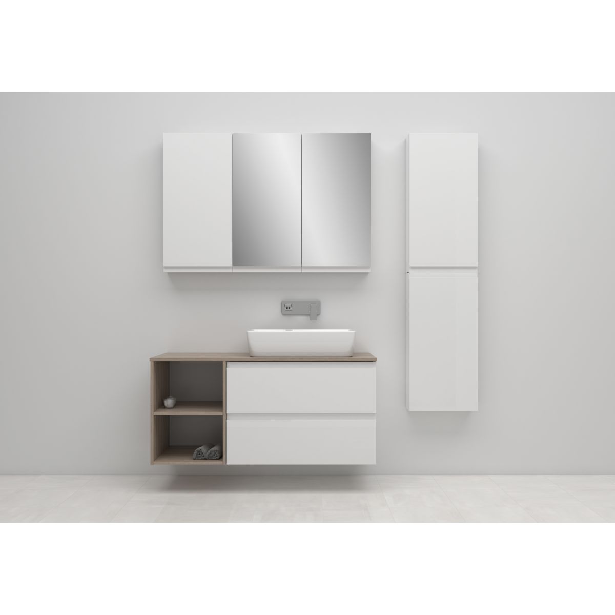 - Das Schrankmodul kann mit anderen Moduo-Unterbauschränken kombiniert werden, um eine komplette Badezimmerausstattung zu schaffen