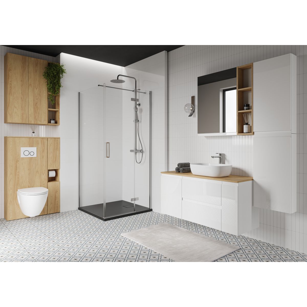 - Cargo-Schrank – eine praktische Lösung, die den Platz optimal nutzt, einen einfachen Zugang zu Badaccessoires gewährleistet und die Aufbewahrung hoher Gegenstände ermöglicht