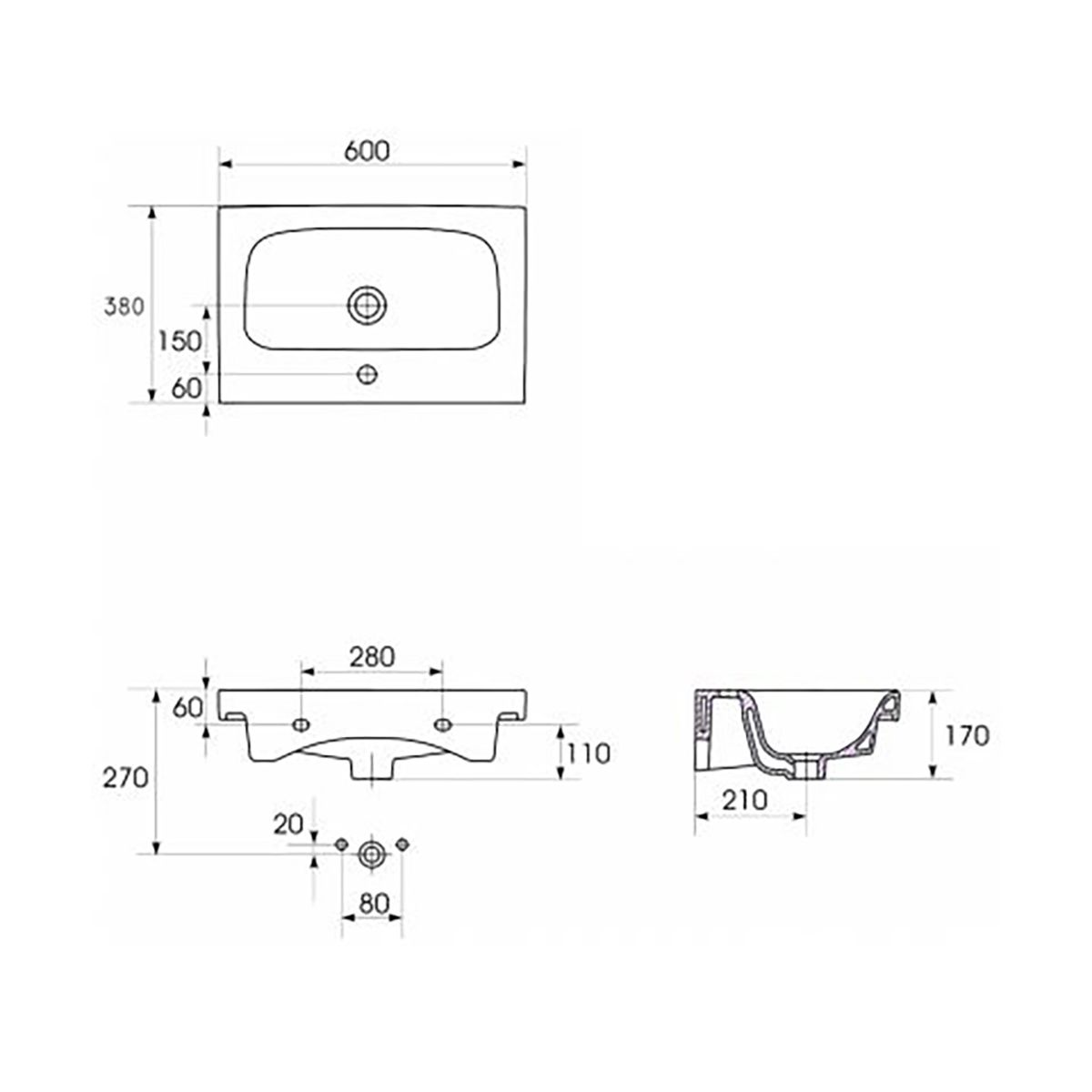 Das Waschbecken MODUO SLIM 60 hat eine auf 38 cm reduzierte Tiefe. Dadurch kann es an Stellen montiert werden, an denen ein Waschbecken mit herkömmlicher Tiefe nicht installiert werden kann. Es verfügt über eine Öffnung für Armaturen und einen Überlauf. Es ist für die Montage mit dem Schrank MODUO SLIM 60 vorgesehen. Es kann auch direkt an der Wand installiert werden.