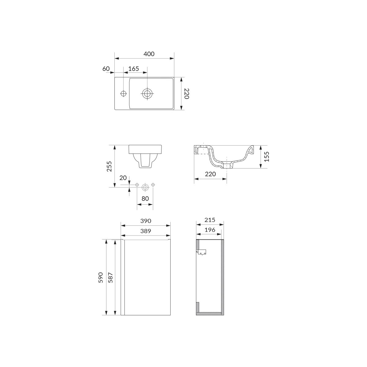 Das Set besteht aus einem weißen Waschtischunterschrank MODUO 40 mit einem Waschbecken MODUO 40. Die Front ist aus 19 mm starker MDF-Platte gefertigt und in Kaschmir lackiert. Der Korpus ist in derselben Farbe gehalten. Der Schrank verfügt über praktische, gefräste Griffe und ein System zum leisen Schließen der Türen. Das Set ist für die Selbstmontage vorgesehen. Das Schrankmodell bietet die Möglichkeit einer universellen Montage der Türen – als linke oder rechte Tür.